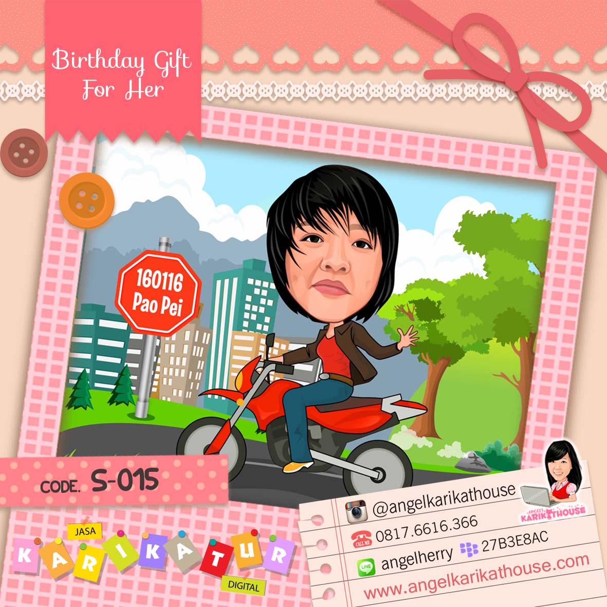 BIRTHDAY GIFT - FOR HER Birthday Gift – For Her Posted by angel's karikathouse on April 12, 2015May 27, 2016 Share this: Share on X (Opens in new window) X Share on Facebook (Opens in new window) Facebook Like Loading... Related Published by angel's karikathouse Karikat House established since 2011 View all posts by angel's karikathouse